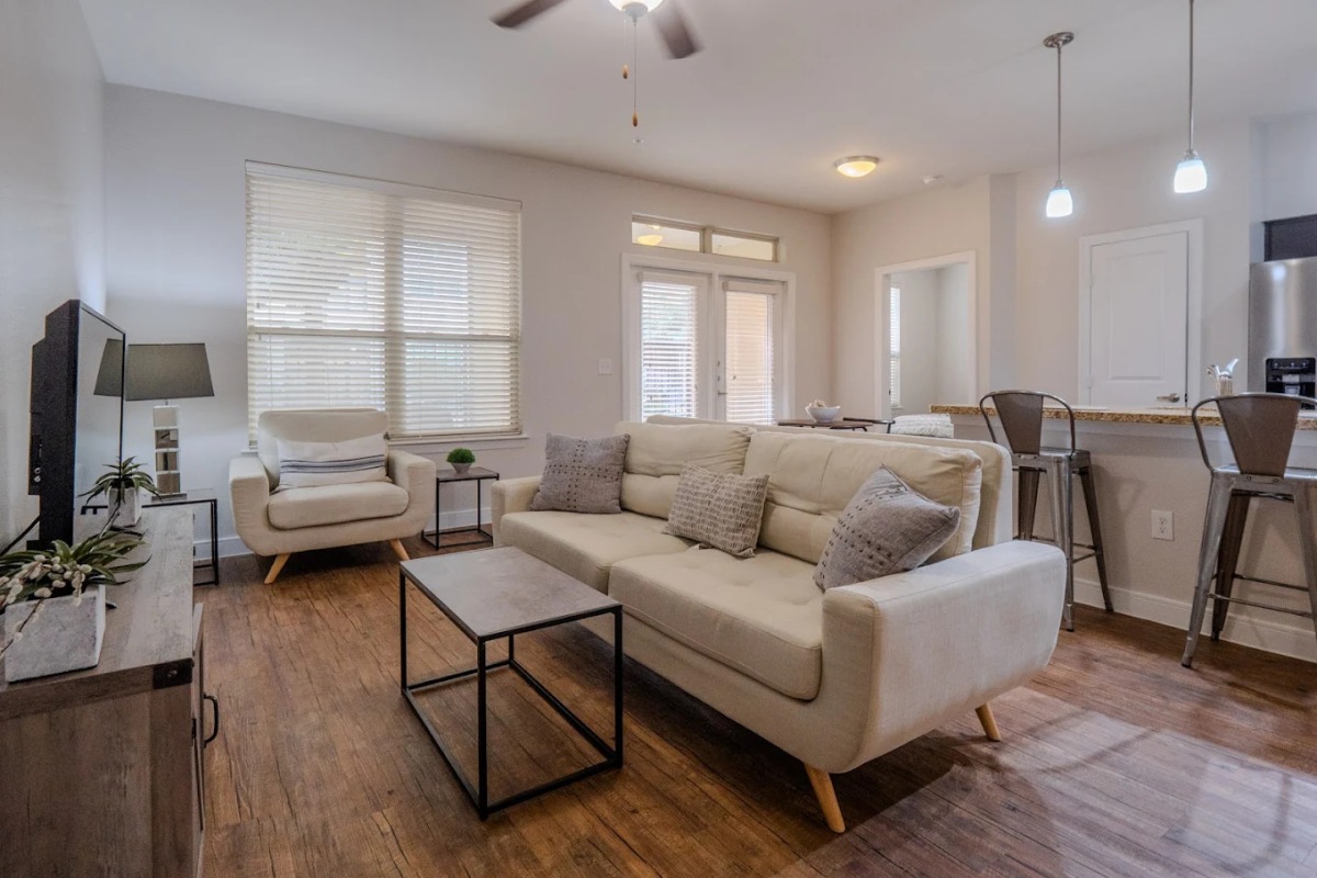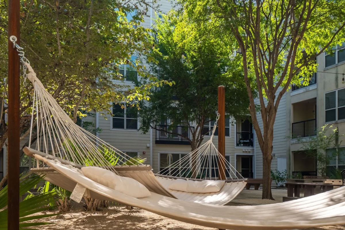Courtyard with hammocks, ping pong, fire pit & bocce court